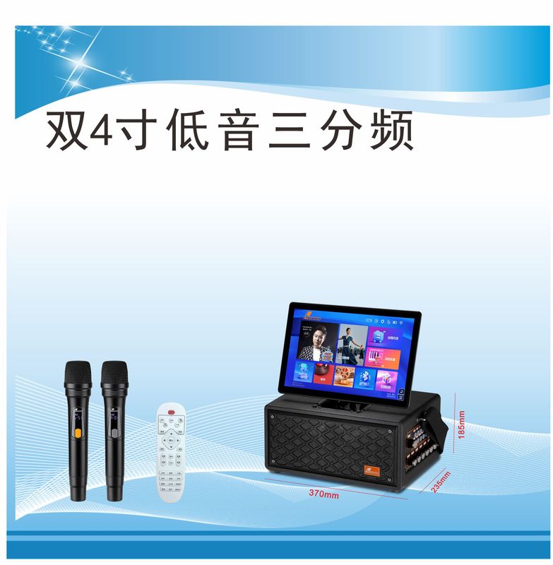 三年免费K歌系统,内置13.3寸安卓高清电容触摸屏,真双系统,同屏异显,内置160G高速硬盘,可存3000+首高清MTV歌曲,5G双频WIFI,OTG数字直播,蓝牙,全民K歌 ,广场舞,AI智能语音点歌,手机点歌音频户外室内模式切换,3种话筒变音,伴唱,直播口输出,电容咪,音乐,话筒,混响,延时,音乐高低音,话筒高低音单独调节